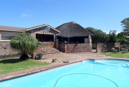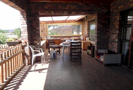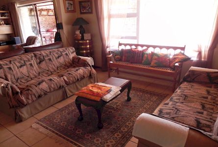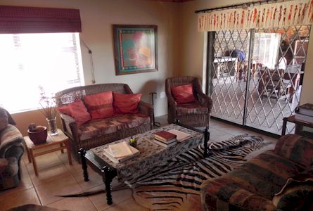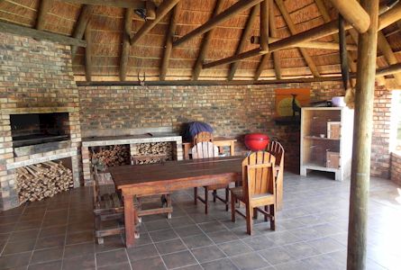 room with sliding doors flowing onto lapa and braai area, sparkling